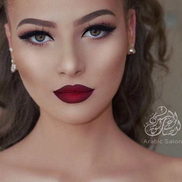 للعروس ذات الوجه المستدير استعملي كيريم اساس داكن علة جانب الوجه والخدود والحاجبان مقوسان ومنحوتان ولون أحمر شفاه جريء