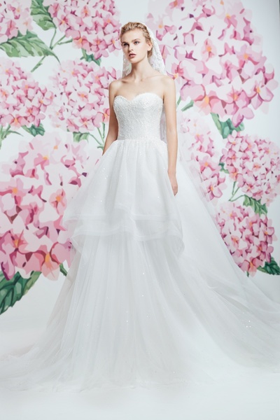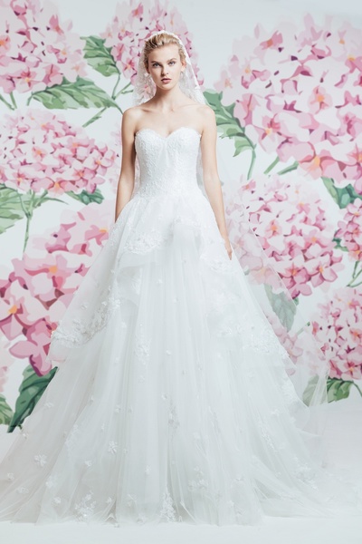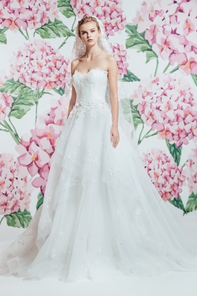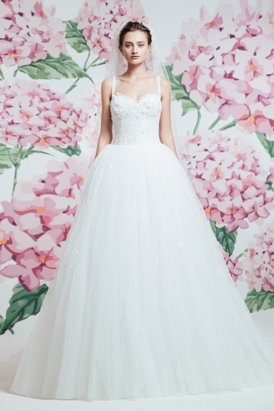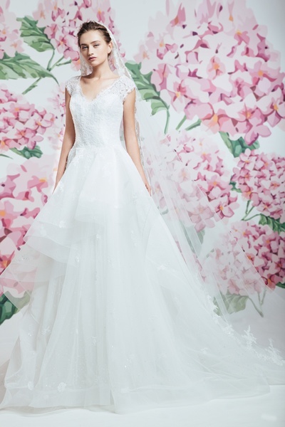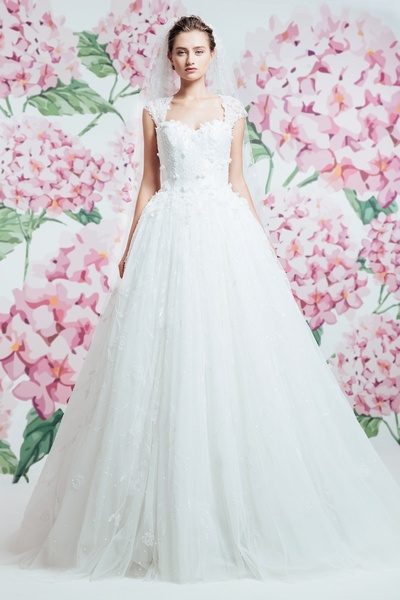 بجمعها بين الكلاسيكية والاناقة والقصات المميزة المتنوعة حيث سيطرت التنورة الكبيرة على الفساتين وتنوعت قصات الصدر بيت الأكمام والأكتاف العارية والشفافة لتناسب أذواق العرائس المختلفة