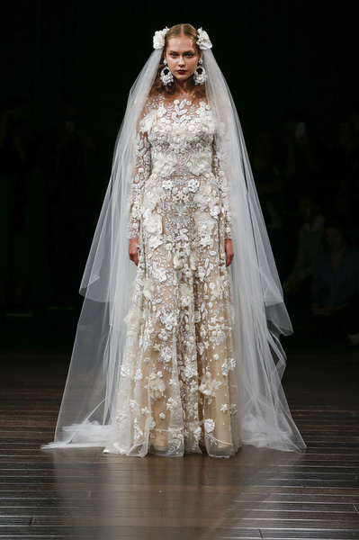 أبدع المصمم الهندي نعيم خان Naeem Khan في مجموعته الجديدة لفساتين زفاف خريف عام 2017 والتي قام فيها بالمزج بين الأسلوب الشرقي والغربي، بطريقة متطورة ومواكبة للموضة حيث حوت هذه المجموعة الفساتين المزينة بوشاح والتطريزات الملونة المزينة بالورود، الأقمشة والتفاصيل الشفافة، والتصاميم الناعمة. كما اهتم نعيم خان بهذه المجموعة بالإكسسوارات ووالطرحات، فقد قدم الطرحة الطويلة التي زينت بالورود على الجانبين، كما قدم الأقراط الطويلة للعروس التي تبحث عن الأناقة والجاذبية.